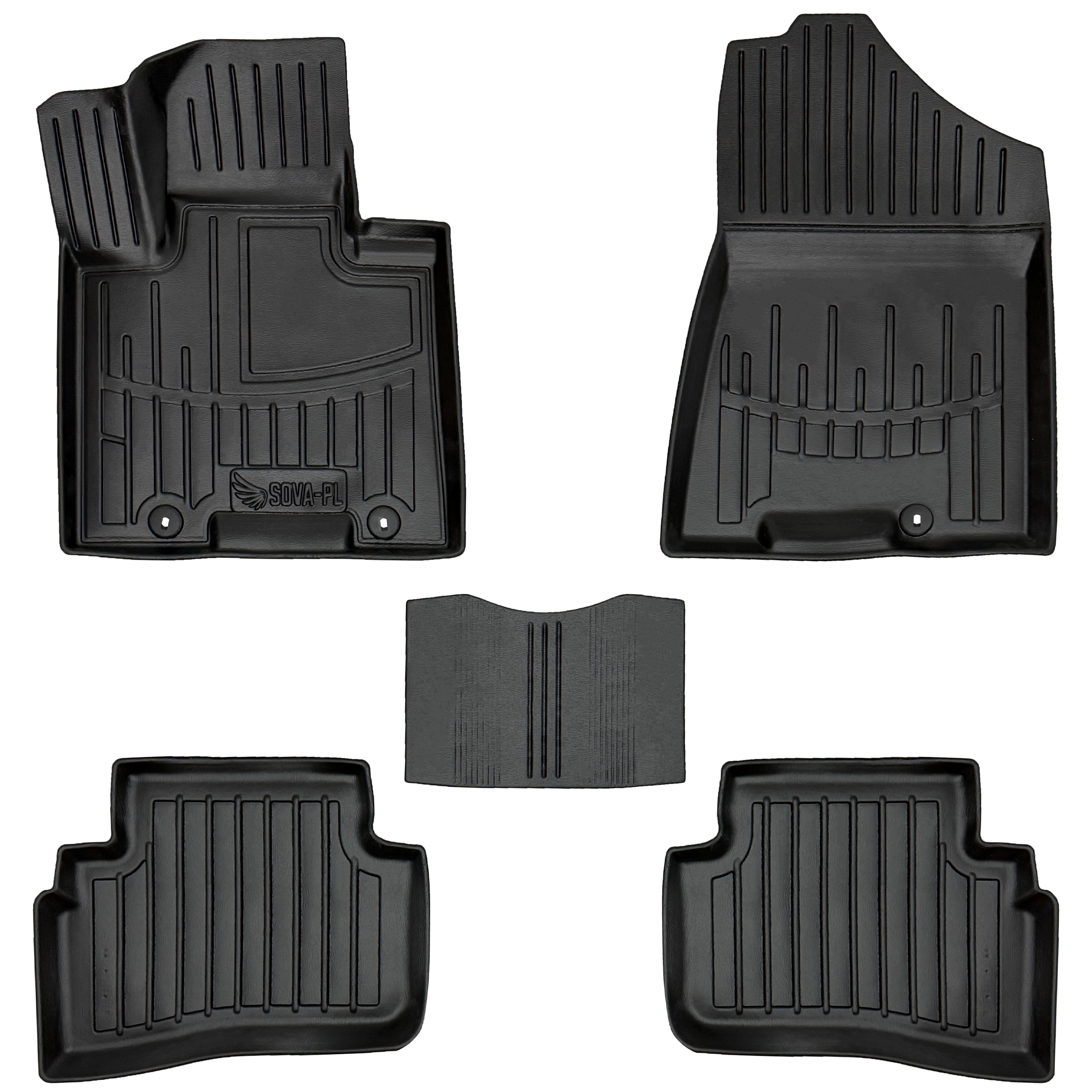 Dywaniki wyposażone w ranty o wysokości do 3,5 cm w miejscach największego gromadzenia się cieczy; posiadają "łapę 3D", która zakrywa platformę (miejsce odpoczynku) pod lewą stopą kierowcy.