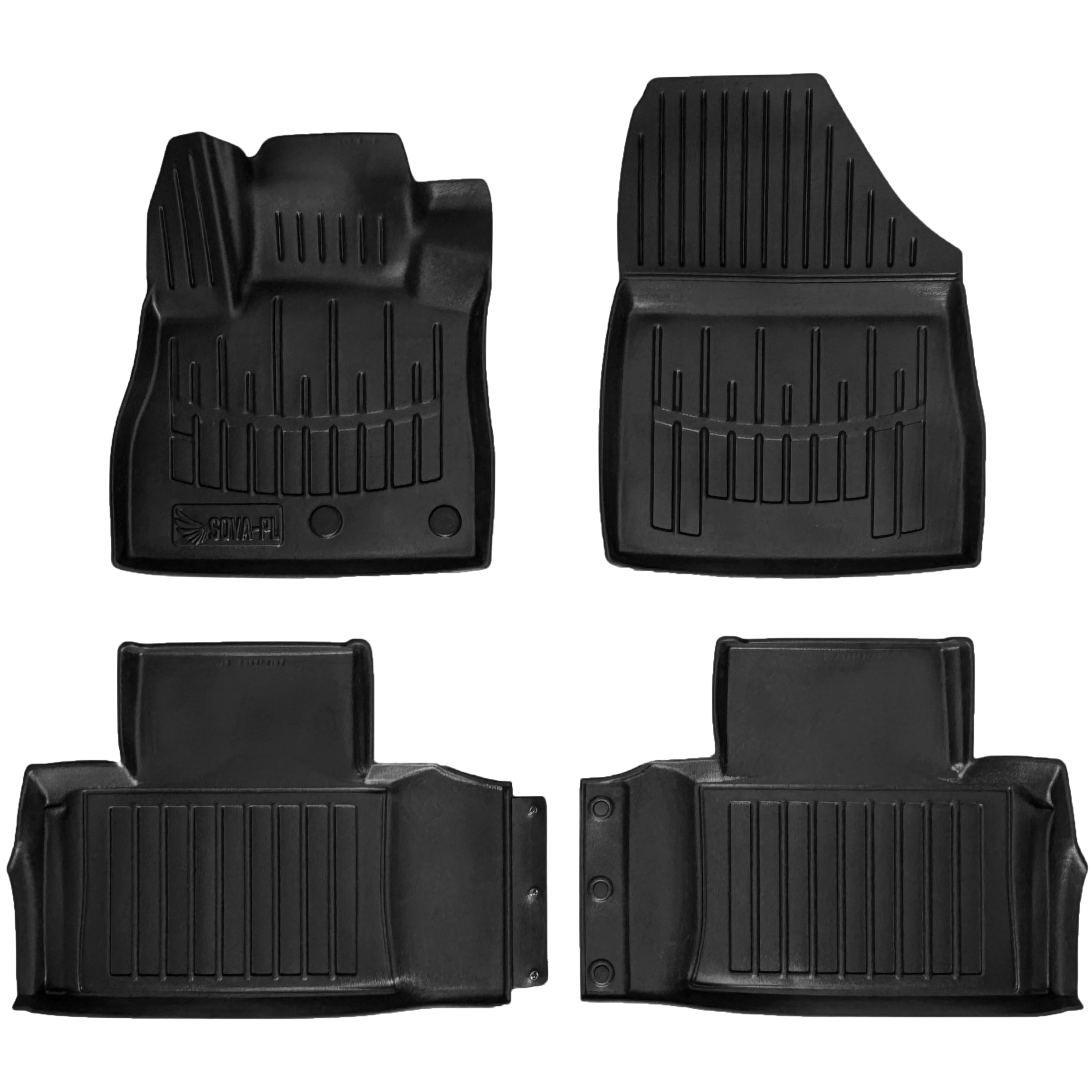 Dywaniki wyposażone w ranty o wysokości do 3,5 cm w miejscach największego gromadzenia się cieczy; posiadają "łapę 3D", która zakrywa platformę (miejsce odpoczynku) pod lewą stopą kierowcy.