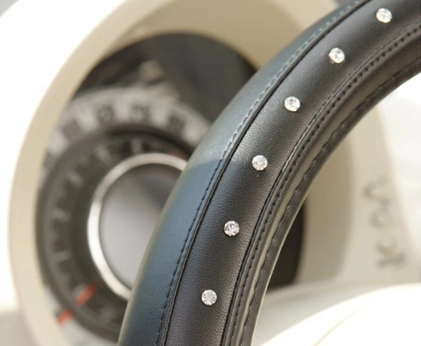 - z zewnątrz wykonana z materiału PVC a wewnątrz posiada wkład gumowy zapobiegający ślizganiu się nakładki na kierownicy